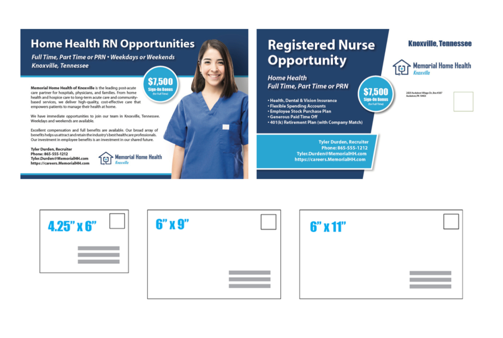 Ask for a customized quote for your opening. Let us know the type of professional, work location, and minimum experience level required. We can prepare a report with professional counts and various advertising options. Our experienced ad writers and artists will make sure your postcard and social media ads look great, and highlight the best selling points. Advertisers usually receive an ad proof within 24 hours.