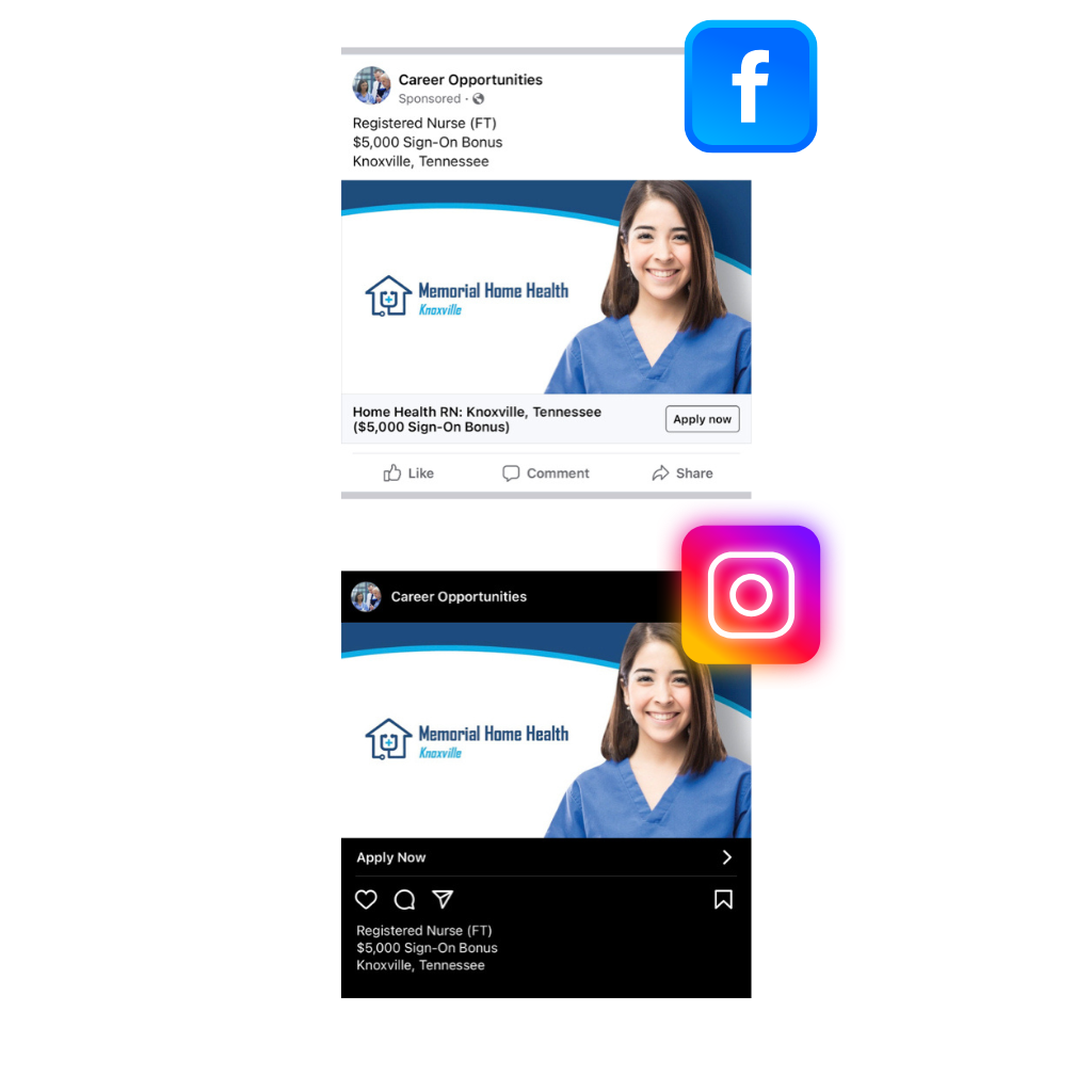 Our in-house art team makes the social media ad design easy. We have developed a format of recruitment ad that specifically leverages the social media experience and minimizes the applicants' barriers to action.